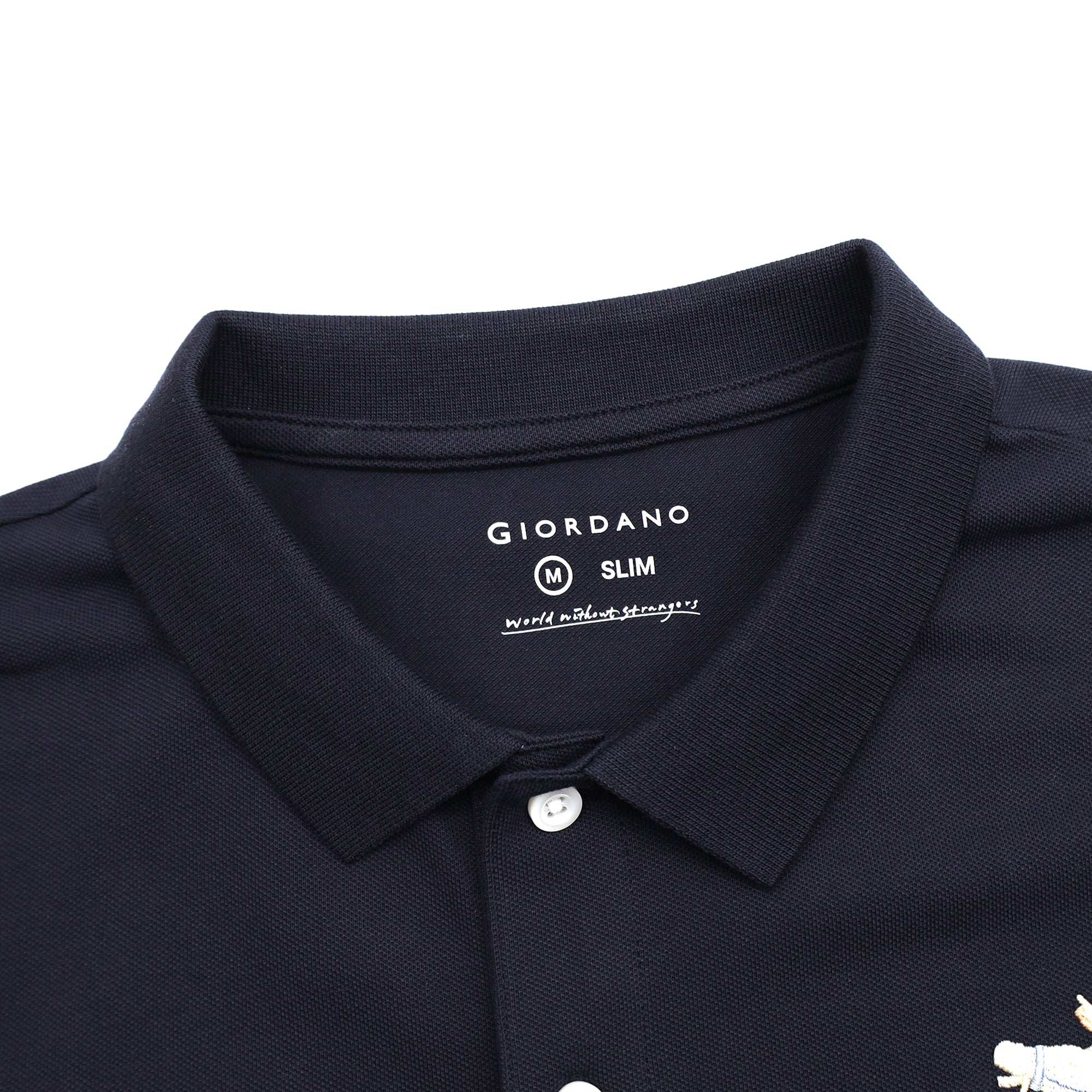 - Classic knit collar with button placket.